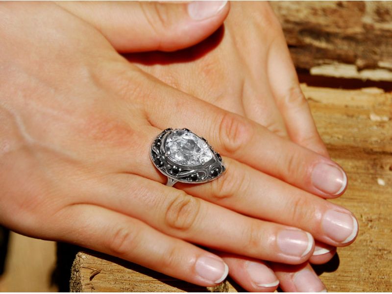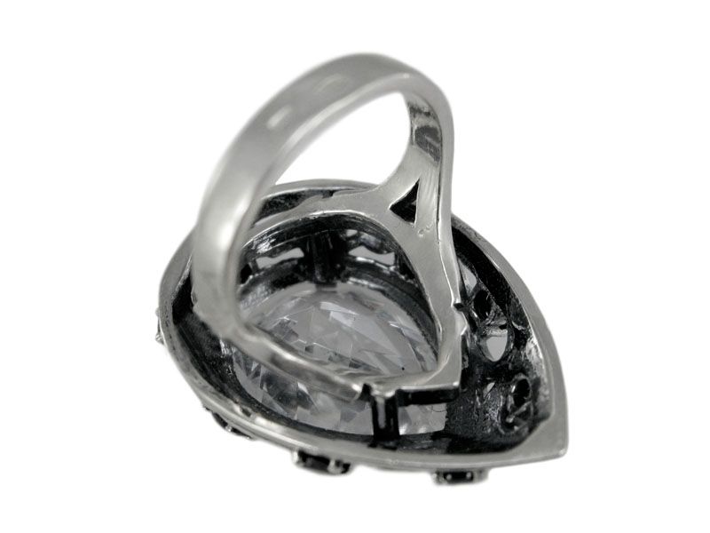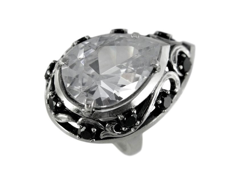 Грушевидный фианит в центре кольца имеет прекрасную огранку, он переливается не только при дневном свете, но и сверкает вечером.