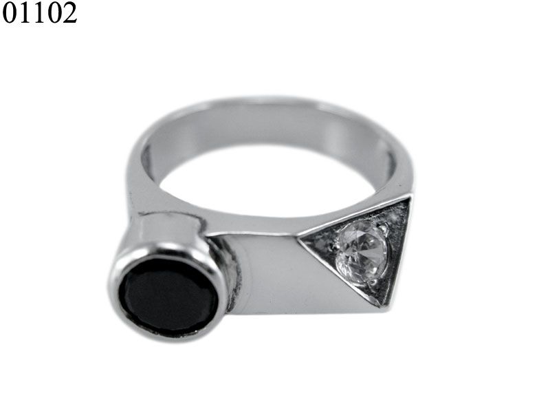 В кольце два камня: фианит черного цвета (более крупный), а также белый фианит (более мелкий).