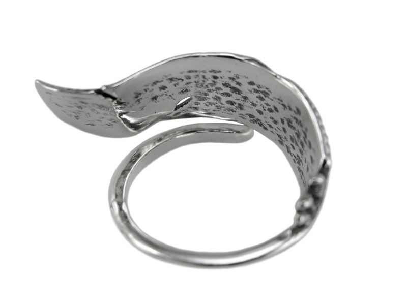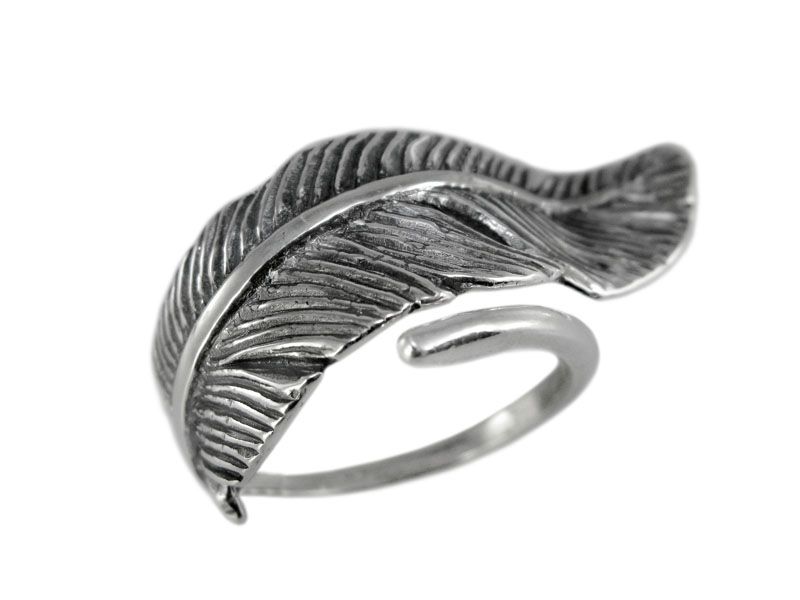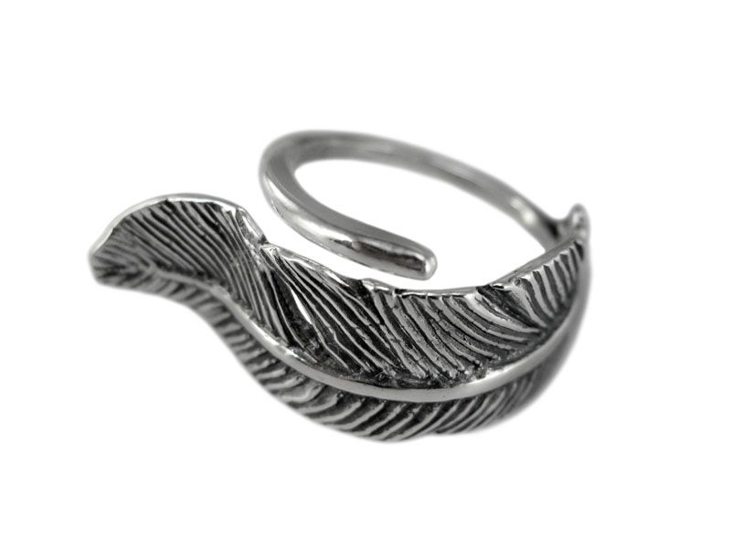 Серебряное кольцо «Перо» безразмерное. Как мы уже сказали выше, стержень пера обходит вокруг пальчика. Вы его можете самостоятельно без усилия отрегулировать под нужный размер – от 16,5 до 20,0.