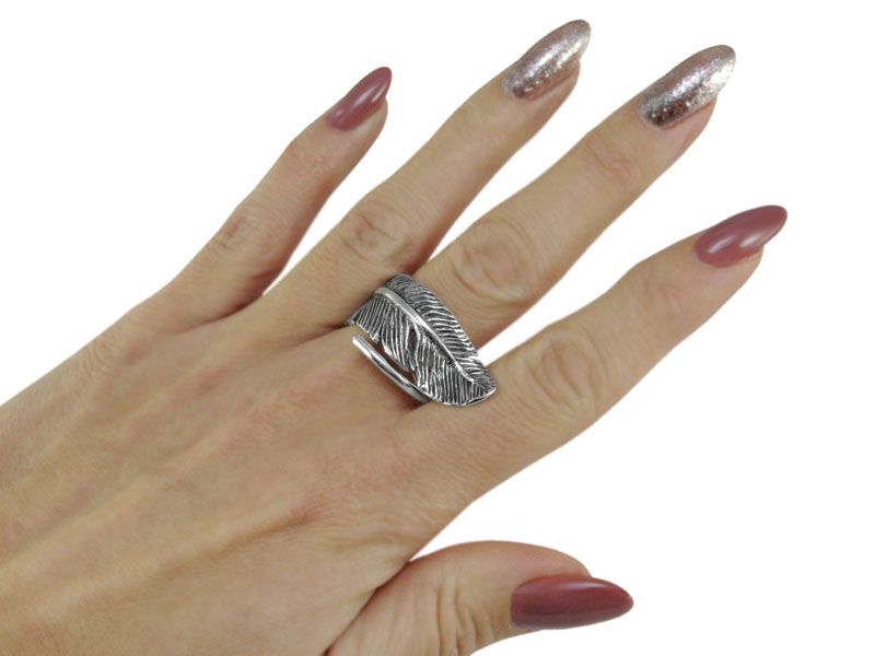 Поверхность кольца повторяет реальную структуру пера. Прожилки подчеркнуты чернением.