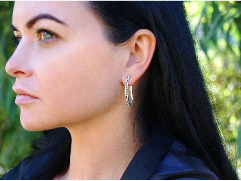 Такие серьги, не смотря на размер, прекрасно подойдут для повседневной носки. Их можно сочетать с любой одеждой и другими украшениями из серебра без камней.