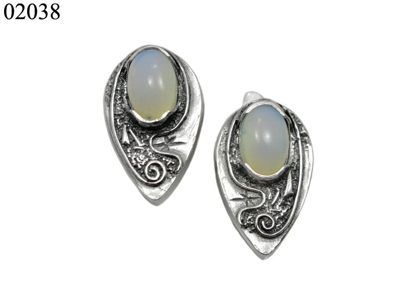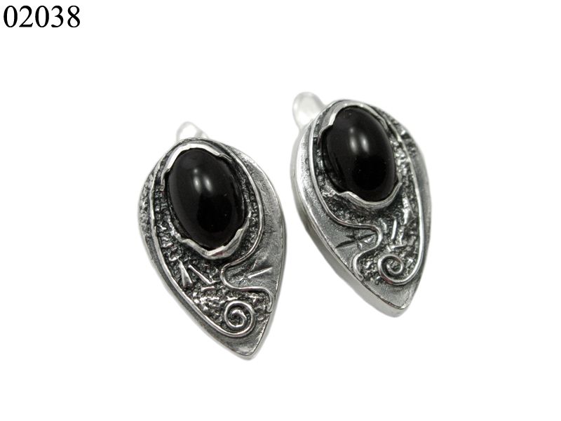 Серьги имеют форму капли, в которую вписан небольшой овальный кабошон и узор-абстракция. Натуральный кабошон имеет весьма необычные крапана – широкие и длинные, которые создают «оправу» для камня сверху и снизу. Они не только надежные, но и просто интересно и необычно выглядят.
