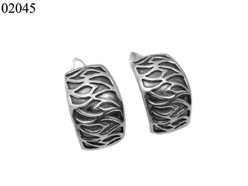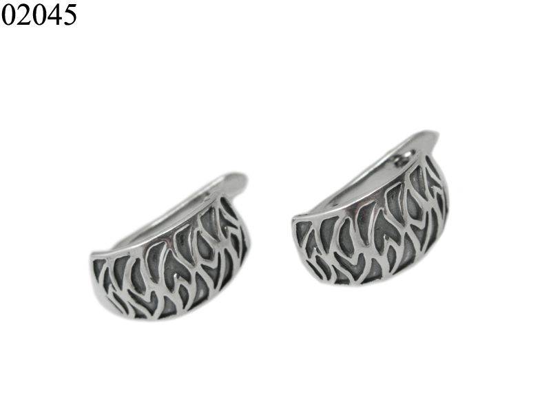 Серебряные серьги «Огонь» относятся к категории безкаменка. Их поверхность декорирована только узором и чернением (оксидировка).
