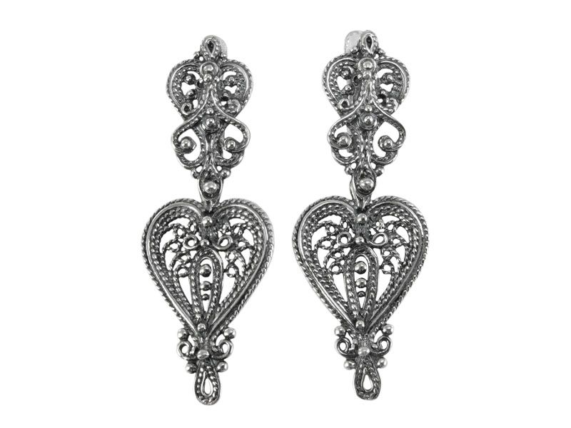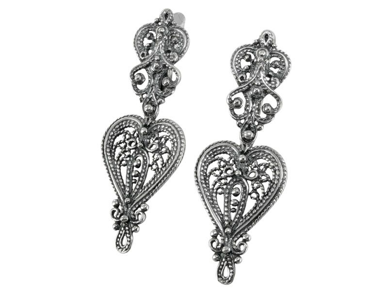 Мы предлагаем целую серию безкаменных серебряных сережек с филигранью – это техника, которая выполняется вручную и представляет собой выкладывание узоров из тонкой закрученной серебряной проволочки. Это безумно кропотливая работа, которая высоко оценивается по всему миру. Данная техника используется не только в создании ювелирных украшений из серебра и золота, но и для создания посуды, сувенирной продукции (столовое серебро, статуэтки, шкатулки).