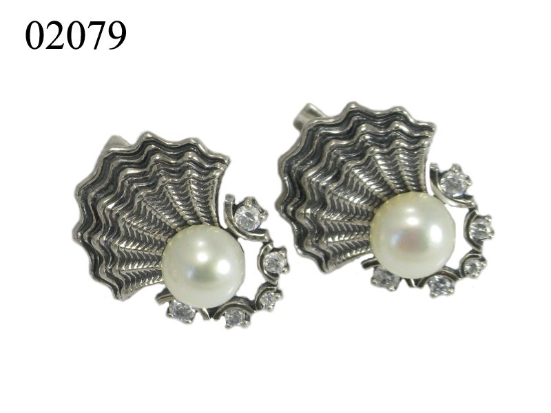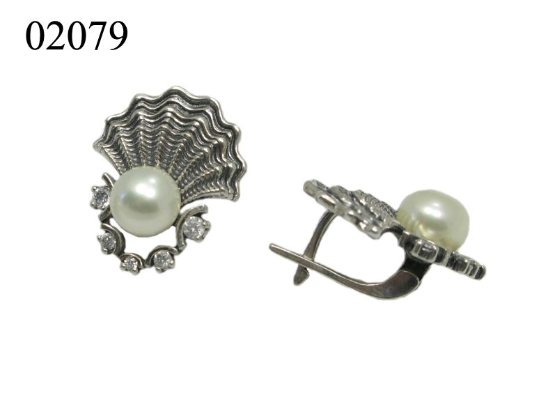 Красивые серьги из серебра 925 пробы в виде раковины, в середине которой находится жемчужина, кроме того, серьги инкрустированы фианитами. В комплекте имеется кольцо.