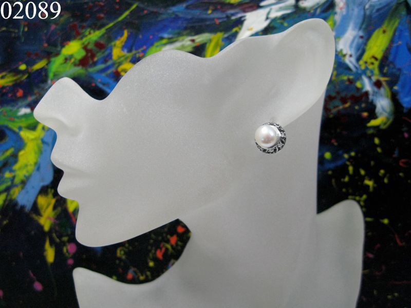 Серьги имеют круглую форму. В центре круга – белый культивированный жемчуг. По кругу на расстоянии нескольких миллиметров от центральной вставки расположены небольшие прозрачные камни – кубический цирконий. На каждой сережке 8 камней.