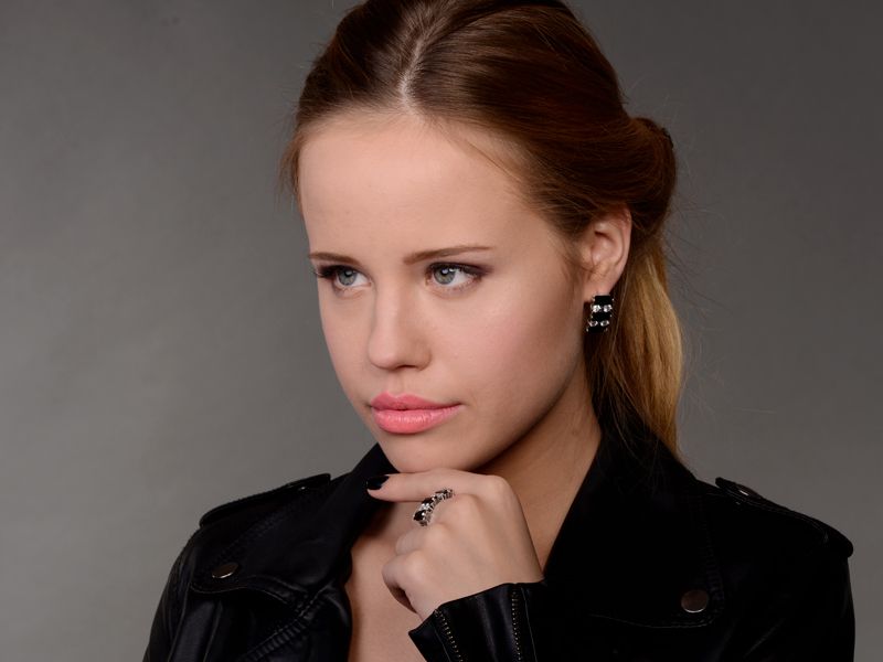 Классическая форма серьги – полудужки, которые усеяны фианитами разной формы и цвета. Камни двух цветов: черный и белый. В комплект к серьгам можно подобрать кольцо Аделаида. Такие серьги подчеркнут Ваш вкус, как на деловой встрече, так и на светском мероприятии.