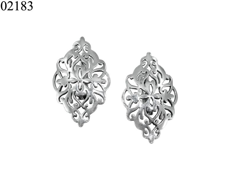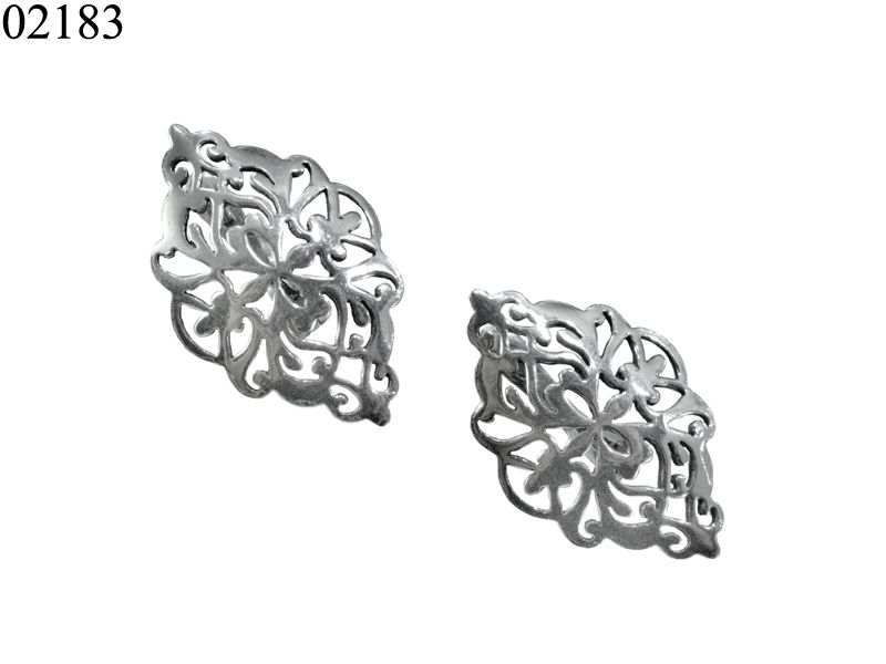 Дизайн сережек повторяет прорезной орнамент кольца, только в уменьшенном варианте. Поверхность сережек гладкая и блестящая.