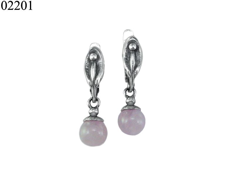 «Амели» - небольшие сережки на английском замке. Состоят из двух элементов. Верхняя часть – небольшой серебряный лепесточек. Нижняя – круглая бусина из натурального камня.