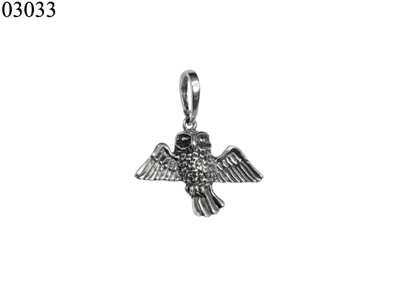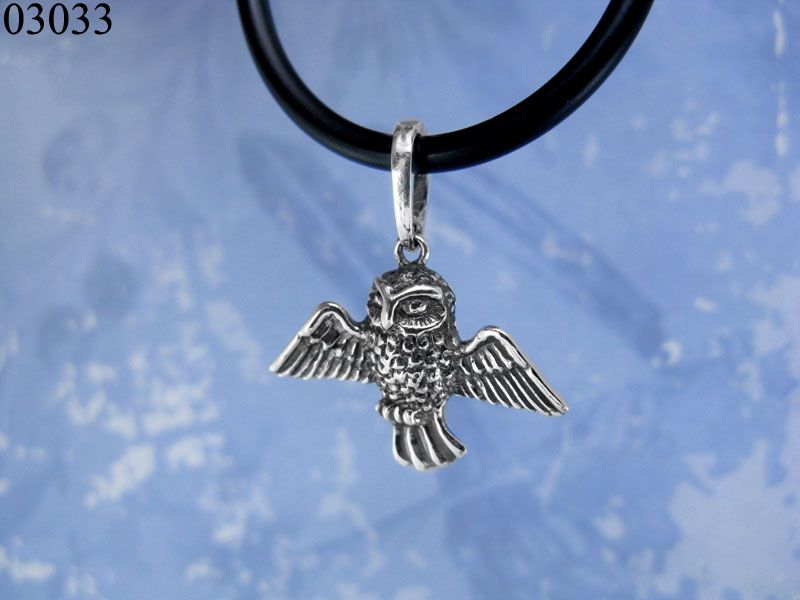 Кулон из серебра в форме совы с раскрытыми крыльями. Сова символизирует мудрость, знания, поэтому такой подвес очень часто покупают в качестве подарка близким людям.