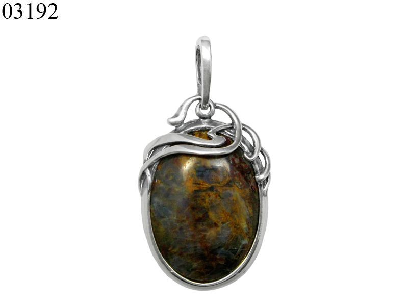 Еще один кулон из серебра 925 пробы – подвес «Дана». Большой овальный камень взят в тонкую оправу, а верхняя часть камешка прикрыта серебряными узорами. При своем крупном размере, кулон не смотрится массивно и грубо.