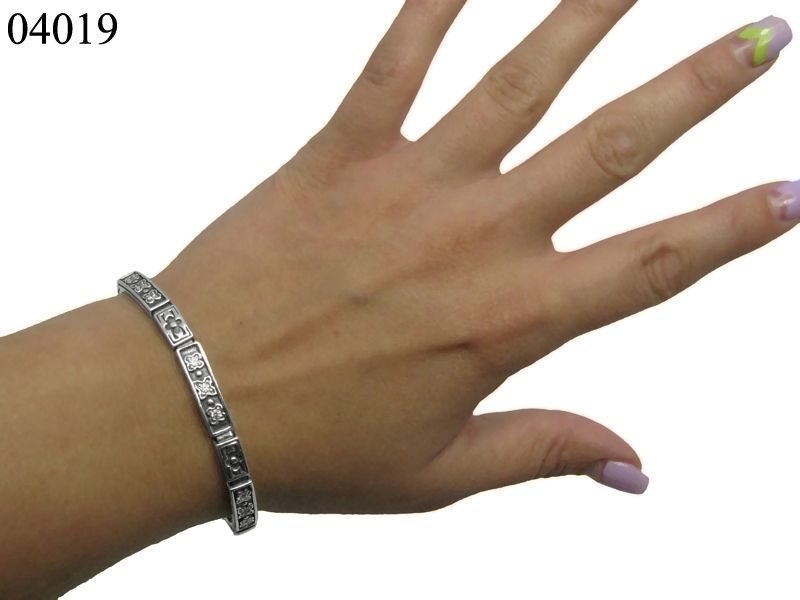 Серебряный браслет «Фиалка» не только нежный и романтичный браслет, но и достаточно оригинальный. Во-первых, весь браслет состоит из одинаковых прямоугольных элементов. Благодаря этому браслет из серебра «Фиалка» прекрасно ложится на ручку любого размера – изгибается и не ломается. Во-вторых, само сечение отличается от классического представления – она также квадратное.