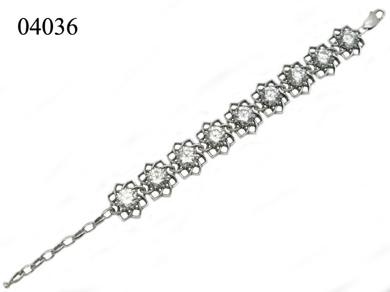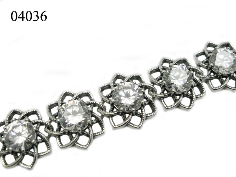 Серебряный браслет «Мальвина» состоит из повторяющихся элементов. Каждый элемент имеет форму цветка, в центре которого крупный белоснежный кубический цирконий.