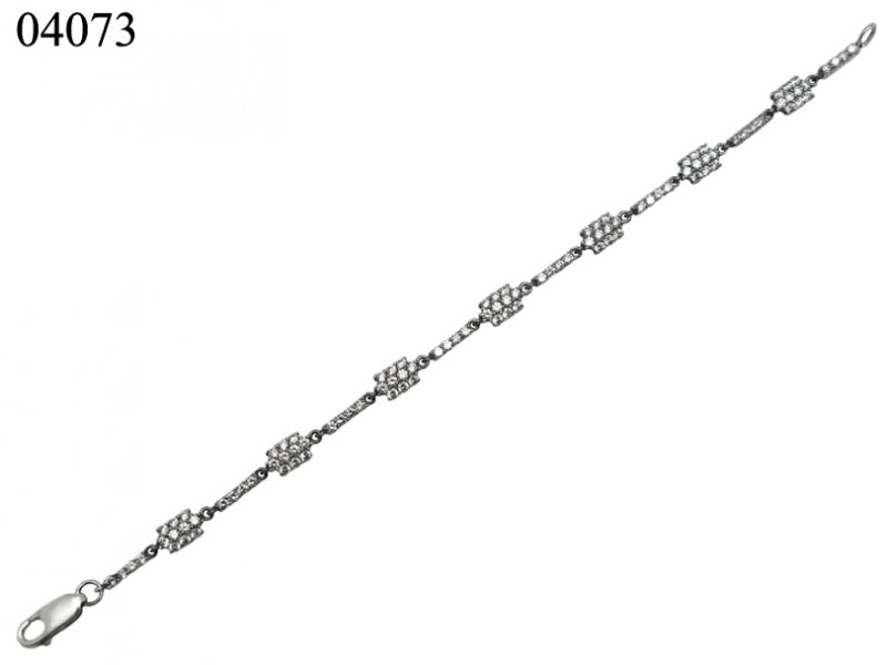 Серебряный браслет «Невеста» - это Ваш шанс продемонстрировать свою нежность и грацию, утонченность и вкус. Украшение из серебра с кубическими циркониями состоит из повторяющихся элементов двух видов – более широкий прямоугольник, а также тонкая удлиненная линия. Все элементы усеяны камнями, поэтому серебра 925 пробы даже не видно… Серебряный браслет сверкает, блестит и дарит действительно хорошее настроение.