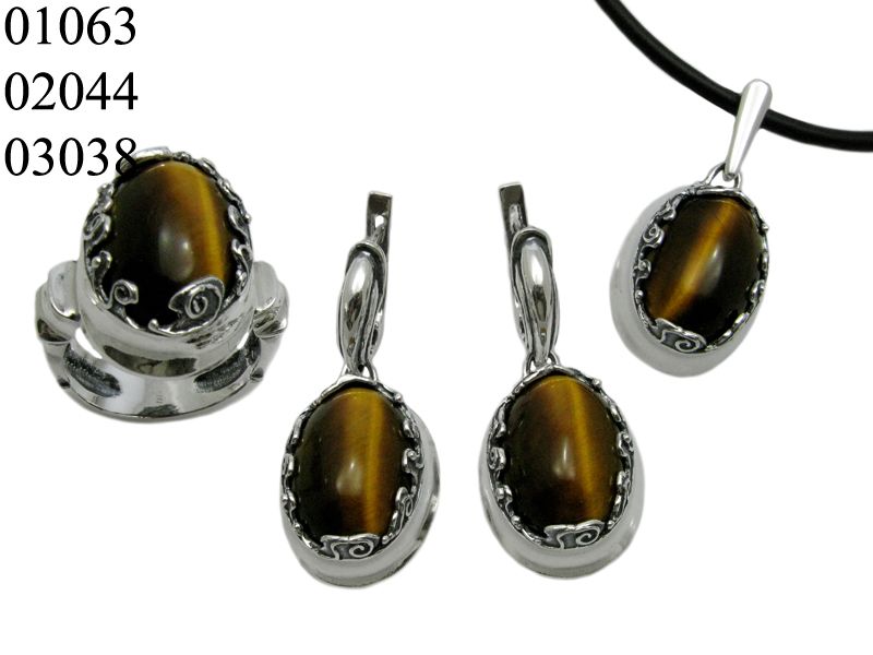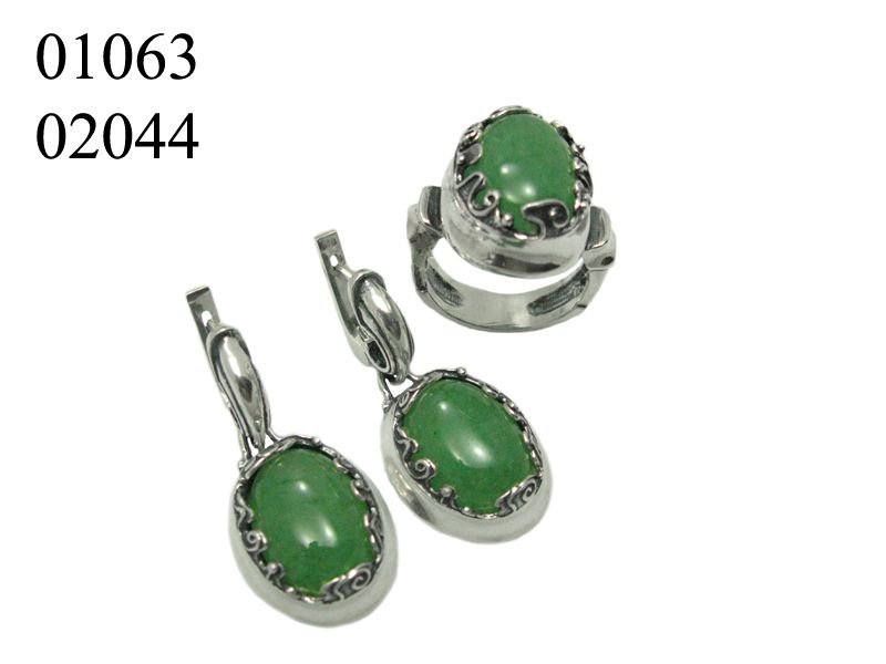 Крупный комплект, состоящий из кольца и сережек, выполненные из серебра 925 пробы. Комплект может быть с :