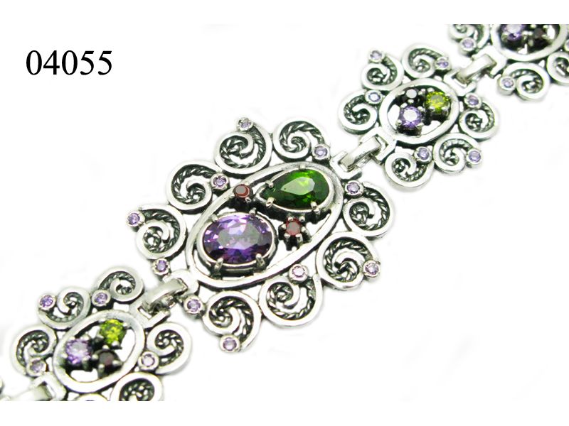 Серебряный оригинальный комплект, в котором использованы элементы техники филигрань. Кроме того, именно в этом наборе прослеживается главный тренд сезона – разнообразие цвета – все фианиты разного цвета.